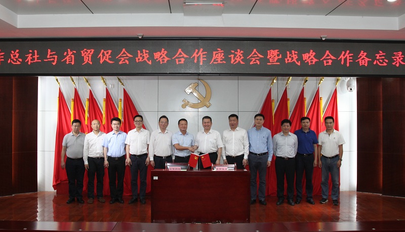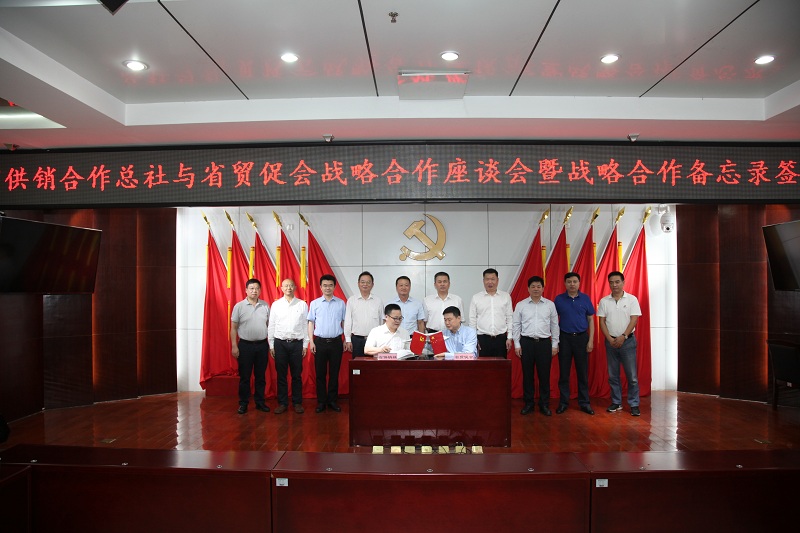 5月30日下午,中国国际贸易促进委员会湖南省分会与湖南省供销合作总社战略合作座谈会暨战略合作备忘录签约仪式在省社举行。省社党组书记、理事会主任曾震亚,省贸促会党组书记、会长贺坚讲话并见证战略合作备忘录签约。省社党组成员、监事会主任廖国锋主持签约仪式。省社党组成员、理事会副主任杨利凯和省贸促会党组成员、副会长胡强共同签署战略合作备忘录。