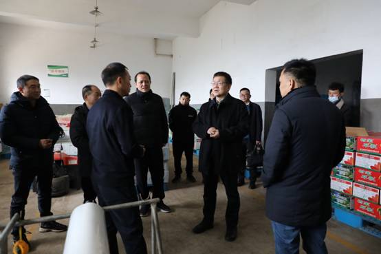 湖南省供销合作总社党组书记、理事会主任刘湘凌(右二)一行在湖南省新三湘农资公司长沙县储备点考察春耕农资储备供应情况及安全生产情况。