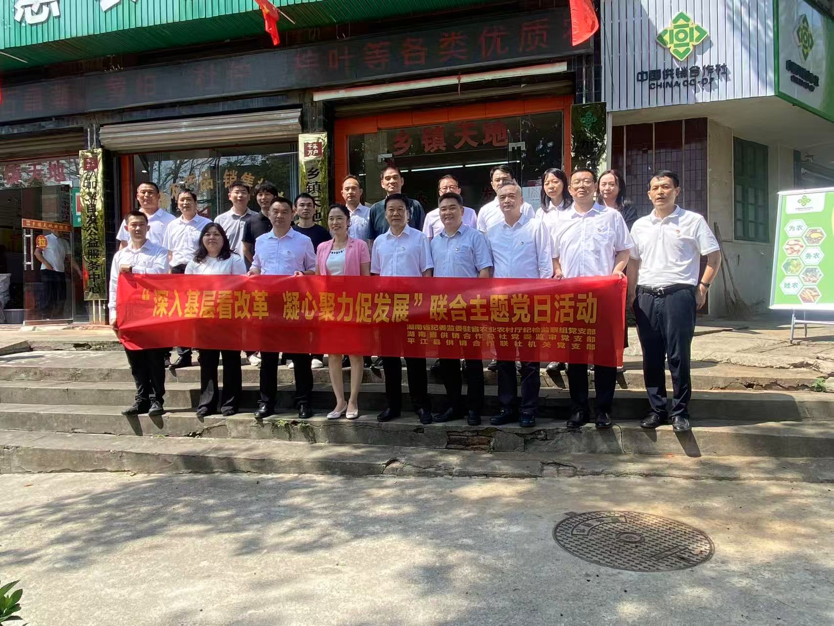 9月28日,省纪委监委驻省农业农村厅纪检监察组党支部、省社党委监审党支部深入平江县,同平江县供销合作联社机关党支部围绕“深入基层看改革凝心聚力促发展”开展联合主题党日活动。省纪委监委驻省农业农村厅纪检监察组组长彭江龙和省社党组成员、监事会主任简政以普通党员身份参加主题党日活动。