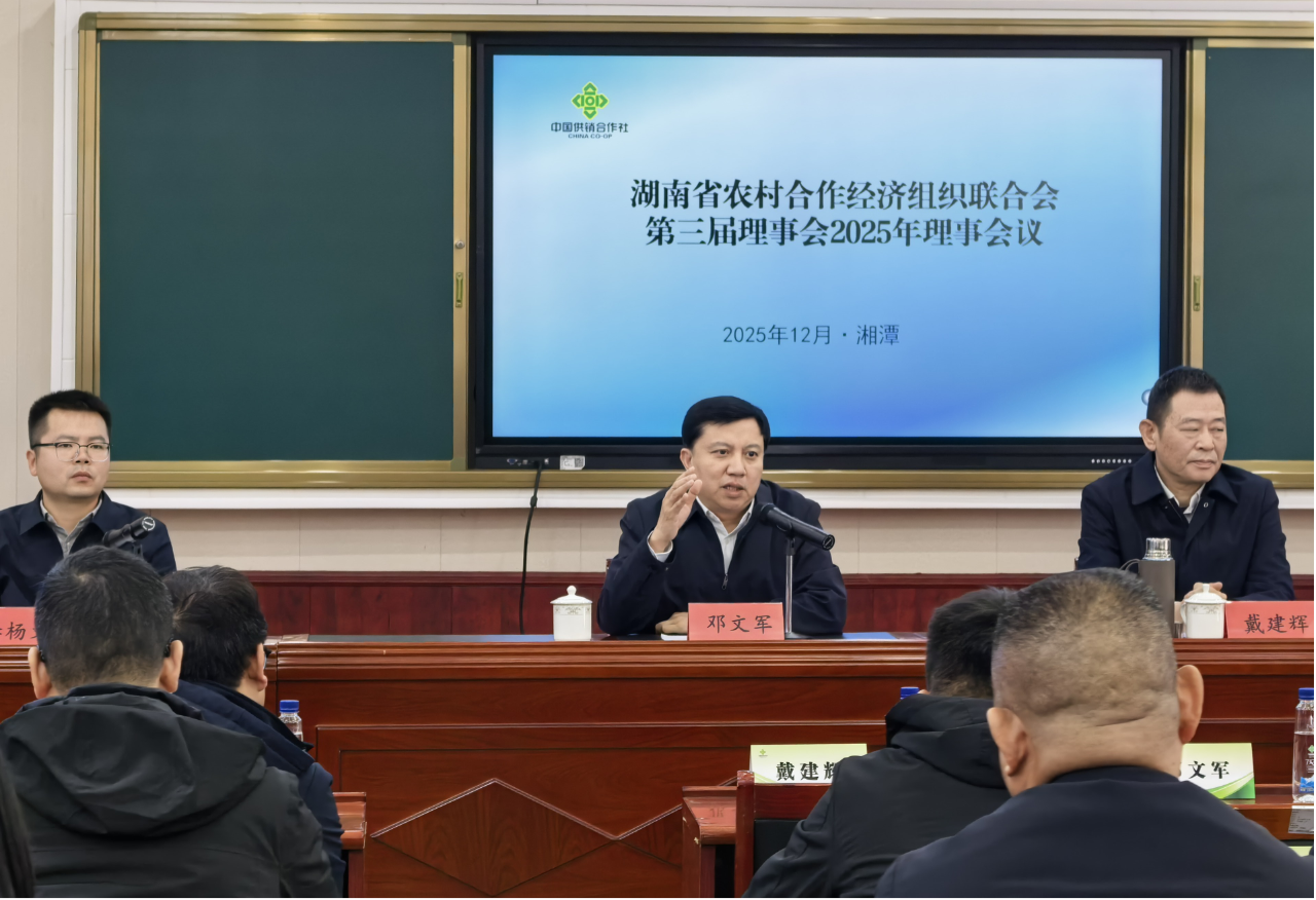 12月4日至5日,湖南省农村合作经济组织联合会(以下简称“省农合会”)第三届理事会2025年第一次全体理事会议在湘潭市举行。省社党组成员、理事会副主任邓文军出席会议并讲话。