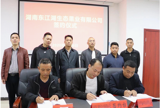4月26日上午,资兴市清江镇供销惠农服务有限公司、资兴市东江湖现代农业发展有限公司、资兴市盛丰农业有限公司就合作组建湖南东江湖生态果业有限公司举行签约仪式。