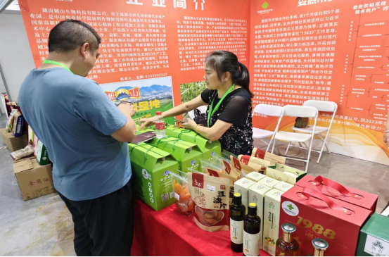 湖南湘山生物科技有限公司位于涟源市桥头河镇现代农业产业园,其茶油产品采用中油所先进的5D生产工艺,最大程度保留了植物油的原香,被认定为绿色食品、湖南好粮油,曾获农博会金奖、粮交会金奖、农交会金奖、名品会最受消费者喜爱品牌。湖南泗元生态农业科技有限公司位于冷水江市中连乡青云村,其多年生优质辣椒采取传统农家蔬菜种植与现代蔬菜大棚生产技术相结合,实现辣椒树果木样生长,多年生开花结果,单株年产量可达10公斤,并且品味优于当地自然环境下种植生长的本地辣椒。在展会上,两家企业的产品深受消费者喜爱,并吸引了相关采购商洽谈。