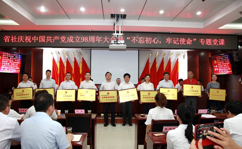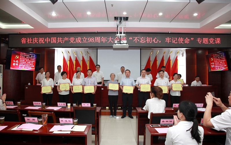 会议表彰了优秀党员、党务工作者和先进党组织,举行了新党员入党宣誓仪式,全体老党员一起重温了入党誓词。省社机关党员干部职工,省社直属机关党委委员、纪委委员,直属单位党组织负责人、“两优一先”代表及离退休支部党员代表参加了会议并聆听了专题党课。