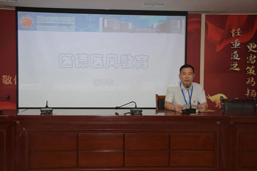 为进一步加强医德医风建设,改进工作作风,提高服务质量,8月31日下午,我院在310多媒体会议室召开医德医风教育专题工作会议,院领导、全体医务人员参加。